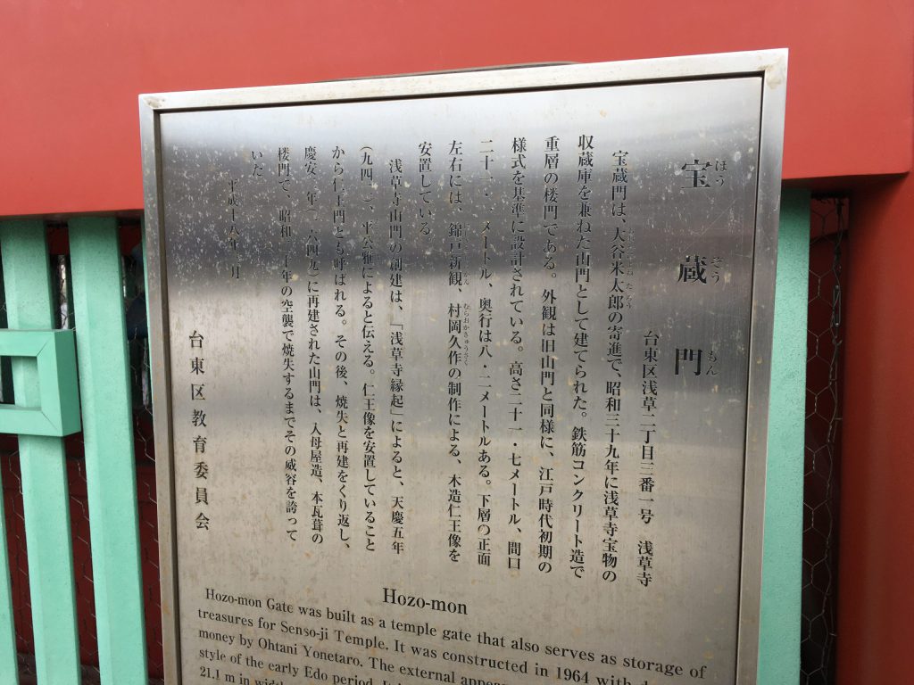 昭和二十年の東京大空襲までは、宝蔵門と同規模の大きさの仁王門が建っていました。