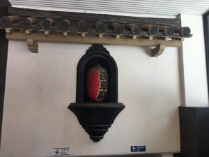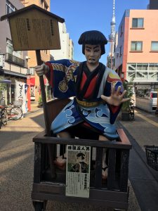 商店街の車止めも歌舞伎にちなんだものになっていました。