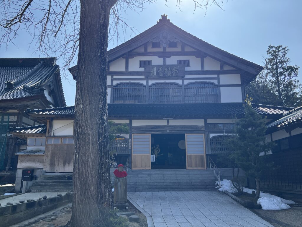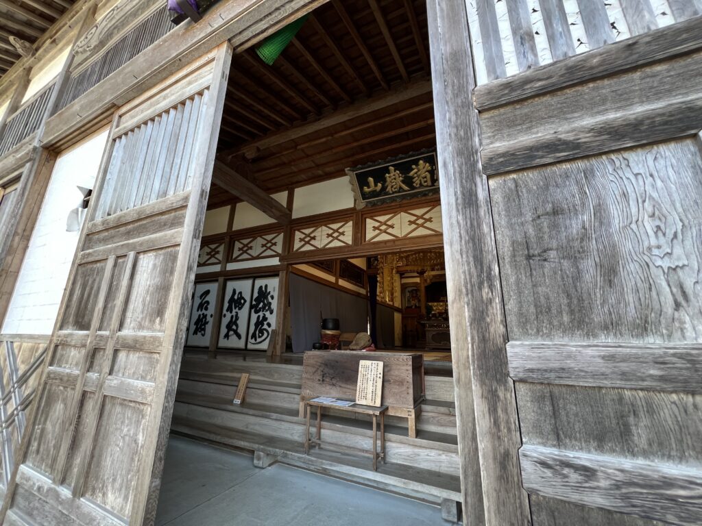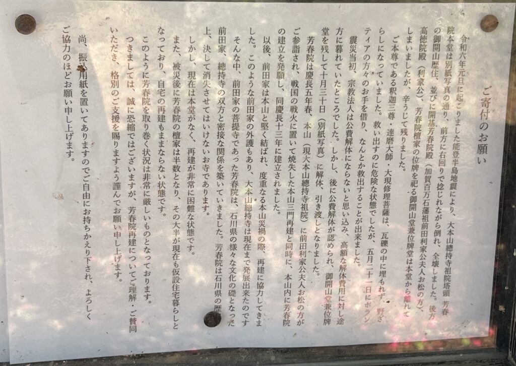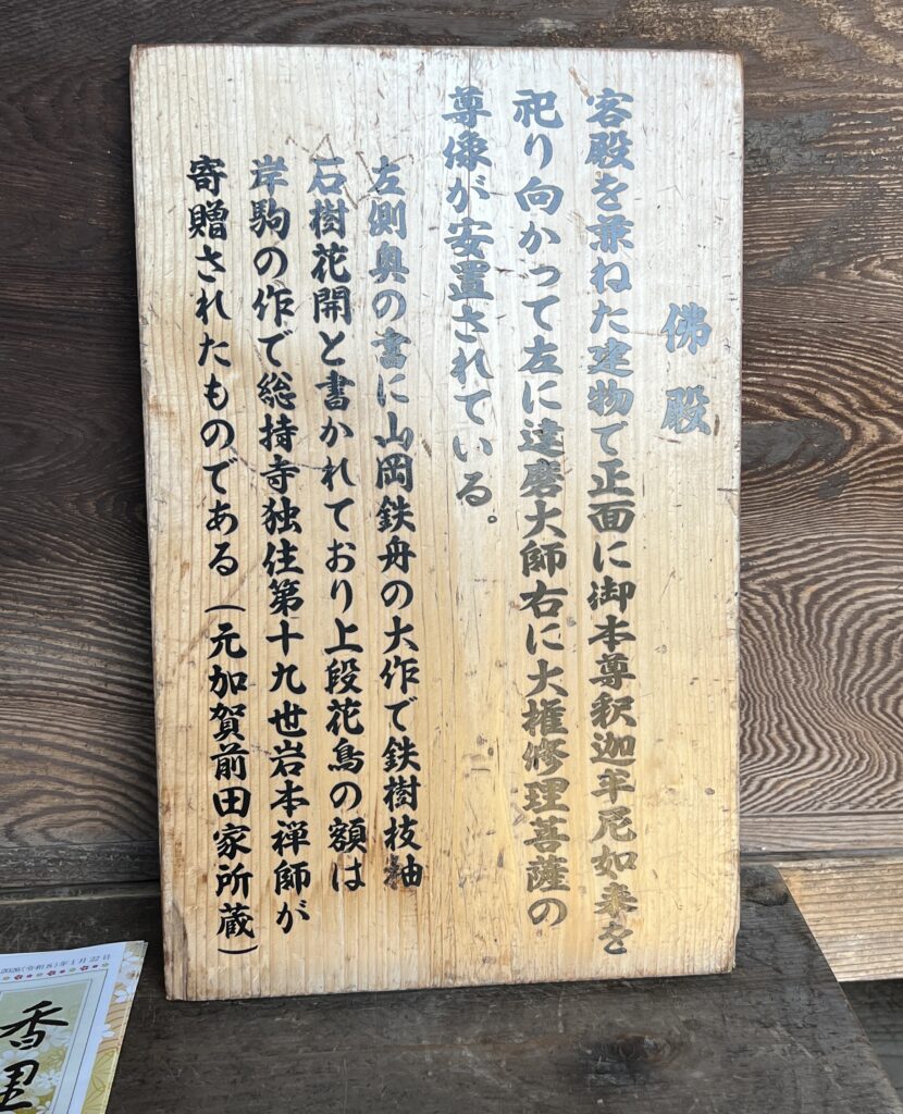 本堂は令和六年元旦の能登半島地震で倒壊し、仮本堂が建っていました。