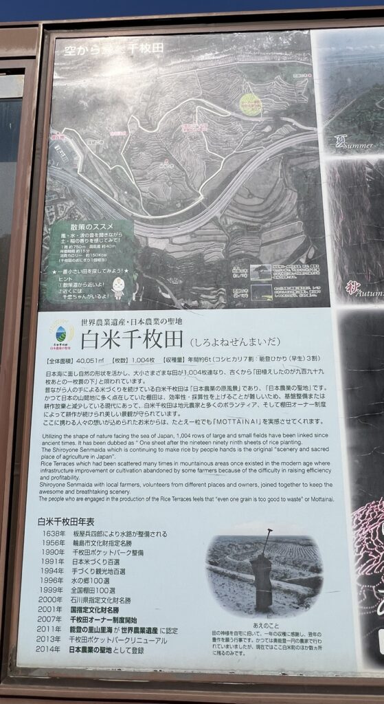輪島市には世界農業遺産に指定されている白米千枚田があります。