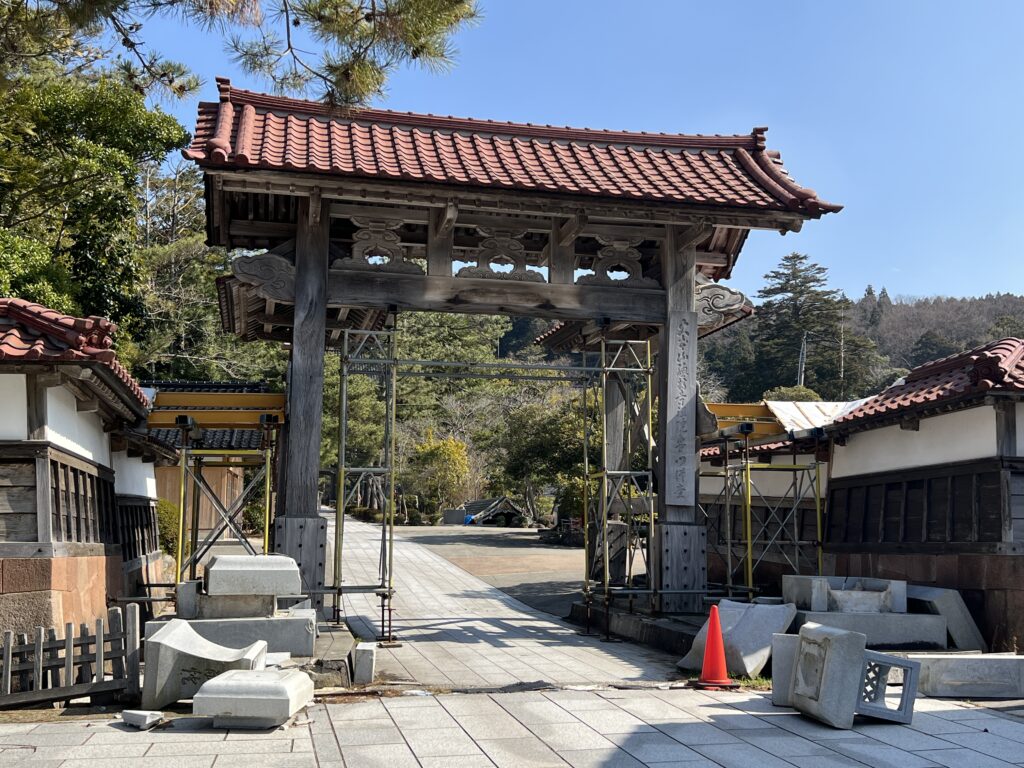 手前には回廊がありましたが、能登半島地震で倒壊しました。