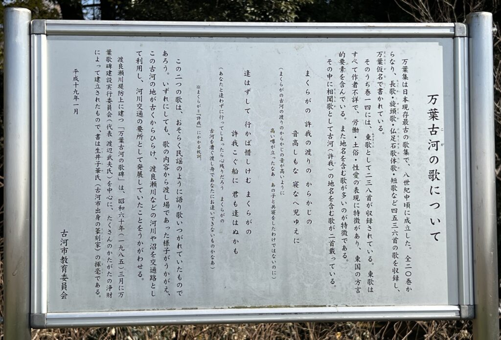 『万葉古河の歌』の碑は、昭和六十年(1985年)に建立されました。