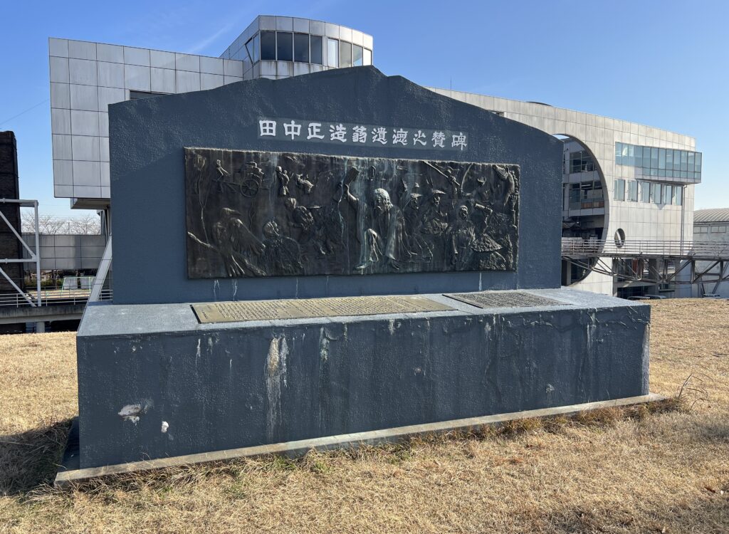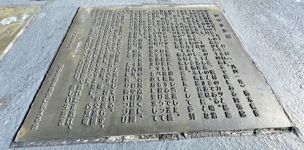 足尾鉱毒事件で明治天皇に直訴を行う様子が刻まれています。