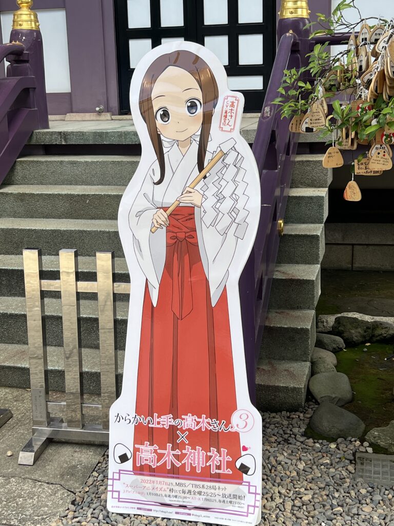 境内にはTVアニメ『からかい上手の高木さん』の高木さんの等身大パネルがありました。