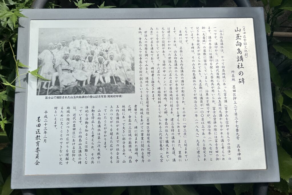 山王向島講社は、かつて向島地域にあった富士講(富士山を信仰する人々の団体)の一つです。