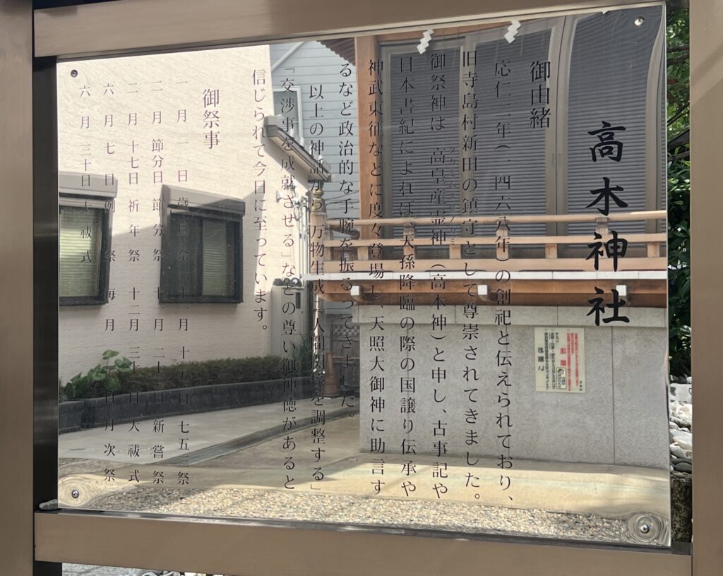 古くから第六天社と呼ばれていました。明治初期に高木神社と改められました。