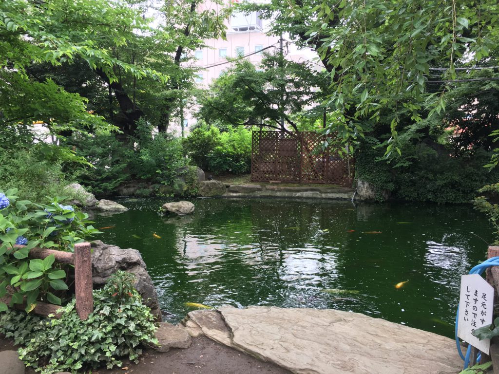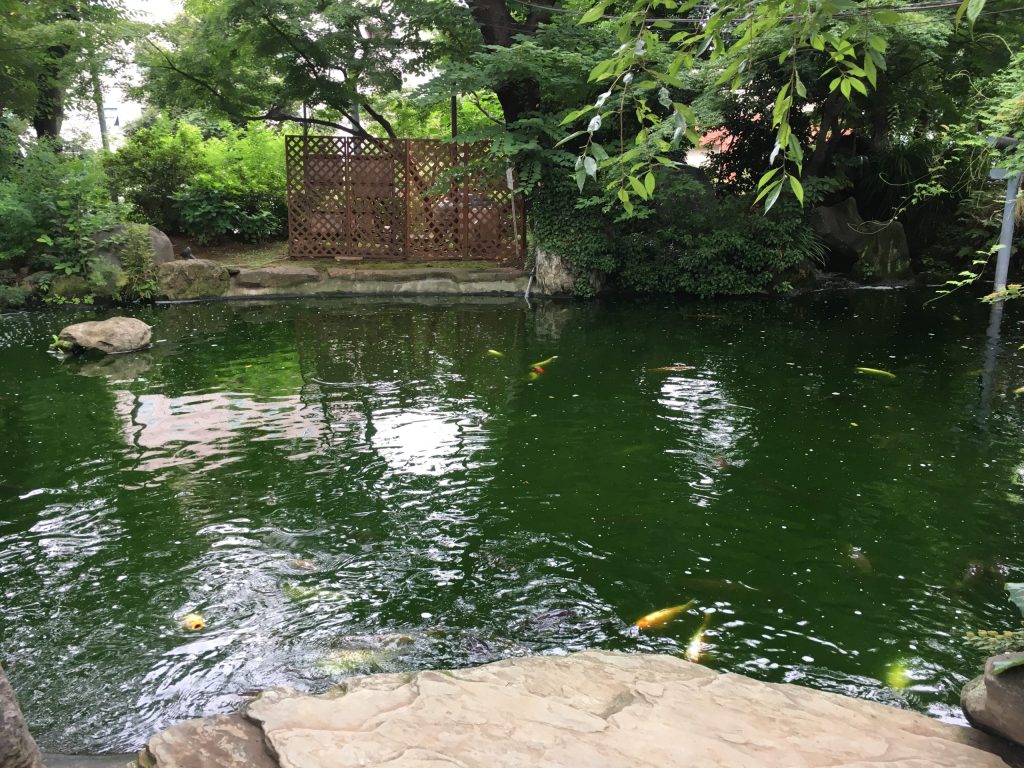 池の鯉は工事が終わるまでお引越し中だそうです。
