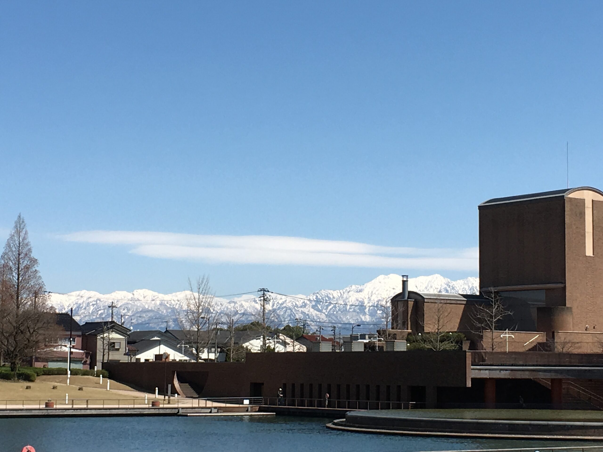 富山駅北口にある富岩運河環水公園からは立山連峰がきれいに見えます。