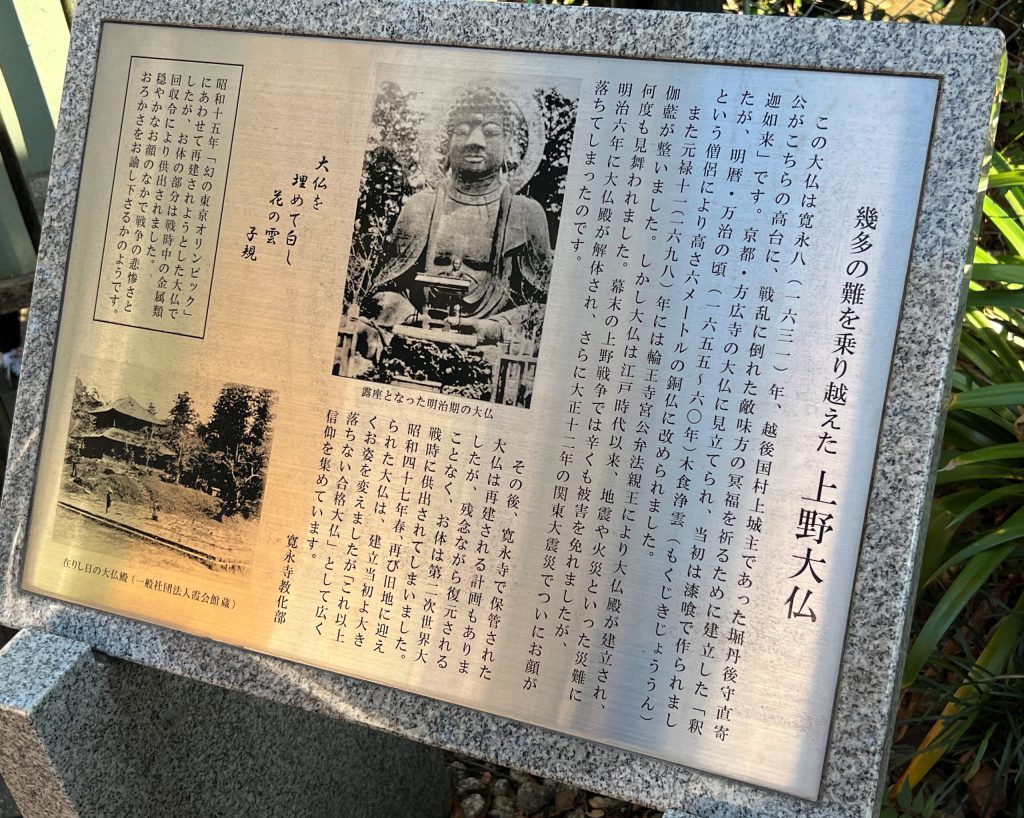 今はお顔のみ、上野公園内の大仏山と呼ばれる丘に佇んでいます。
