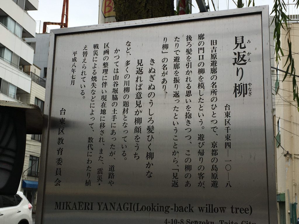 遊郭を振り返ったという事で、『見返り柳』という名で呼ばれています。