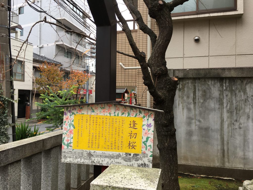 二百年前に吉原神社の御神木でしたが、明治四十四年の大火で焼失しました。